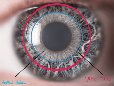 أما في الليل فتكون كمية الضوء التي تصل إلى العين قليلة وينتج عنها اتساع طبيعي في حدقة العين في عين المريض ، حيث أن المنطقة الانتقالية في قرنية المريض (مابين المنطقة المعالجة والغير معالجة ) يقل إدراكها مع الوقت ، وعند حدوث التئام فيها يصبح التدرج فيها غير ملحوظ ، كما يحدث نوع من التأقلم نتيجة تكرار التعرض لهذه الأضواء .